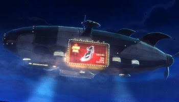 devemos destacar o ambiente futurista do navio, fazendo com que a cidade de